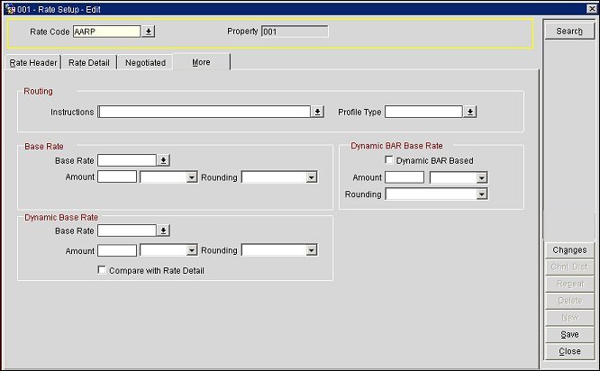 Note: A rate code cannot be selected as a BAR Based rate code or (in ORS) as a Dynamic BAR Based rate code and at the same time have a rate code configured in the Dynamic Base Rate Base Rate field.